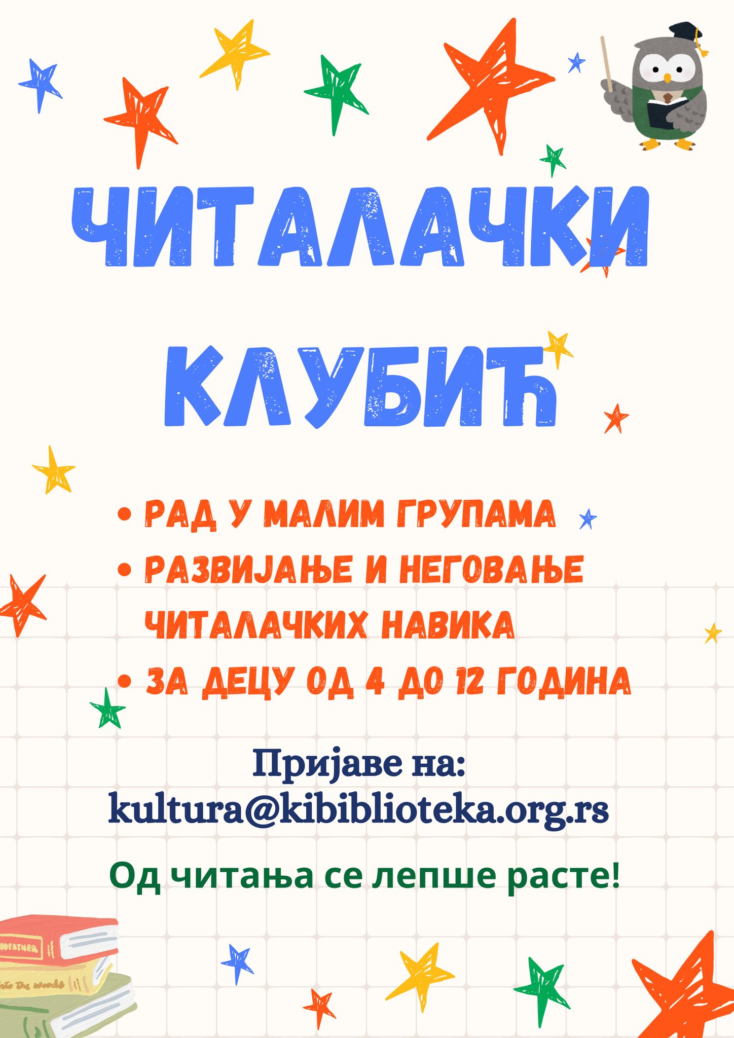 Usvajanje veštine čitanja i čitalačkih navika je proces, koji će zahvaljujući ovim radionicama biti lakši i zanimljiviji deci. Prijavljivanje je u toku, na imejl: [email protected] .