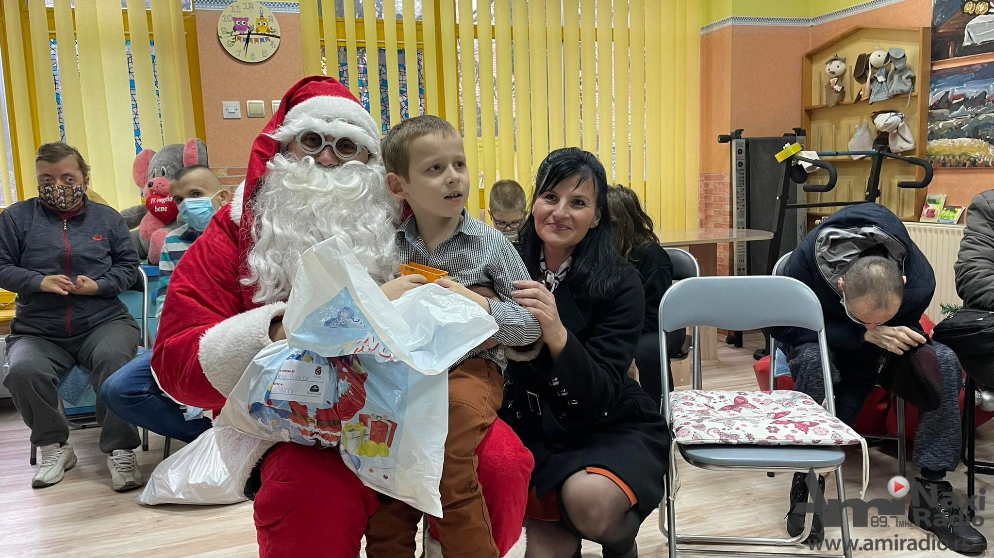 Deda Mraz i članica Gradskog veća za obrazovanje i kulturu Valentina Mickovski posetili su danas Društvo za pomoć mentalno nedovoljno razvijenim osobama „Čigra“ i novogodišnjim paketićima darovali članove ovog udruženja, koji su ubacili pisma u „Kutiju želja“.