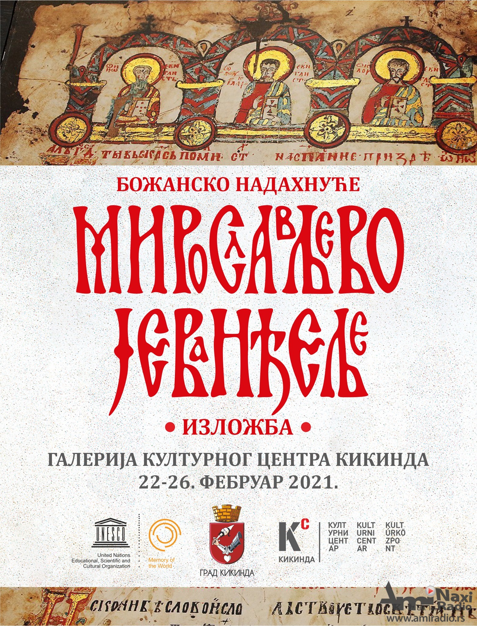 Povodom Međunarodnog dana maternjeg jezika u ponedeljak, 22. februara u galeriji Kulturnog centra biće otvorena izložba „Božanska inspiracija – Miroslavljevo jevanđelje“.