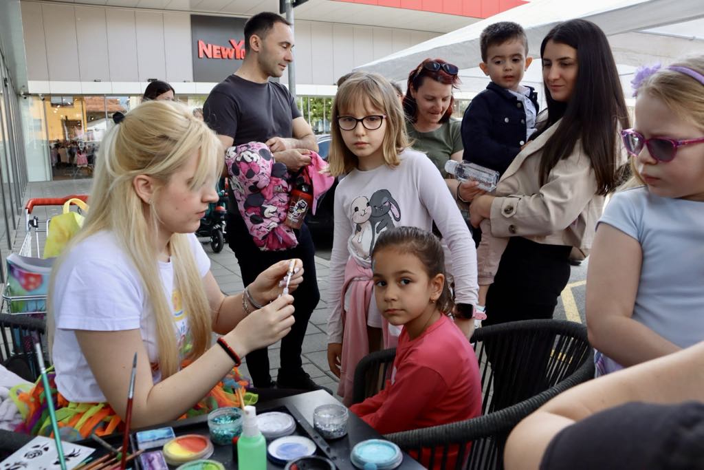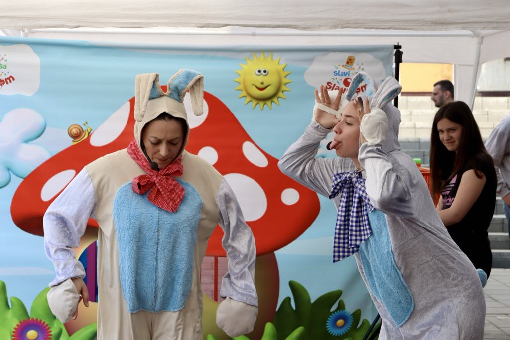 Danas smo imali program sa interaktivnim igrama, sa motivima Uskrsa, scenski program dece, pravljenje balona od sapunice, crtanje po licu i predstavu. Deca su učestvovala i u igri u kojoj su mogli da osvoje nagrade koje je pripremio tržni centar – kaže animator Slavica Poletanović.