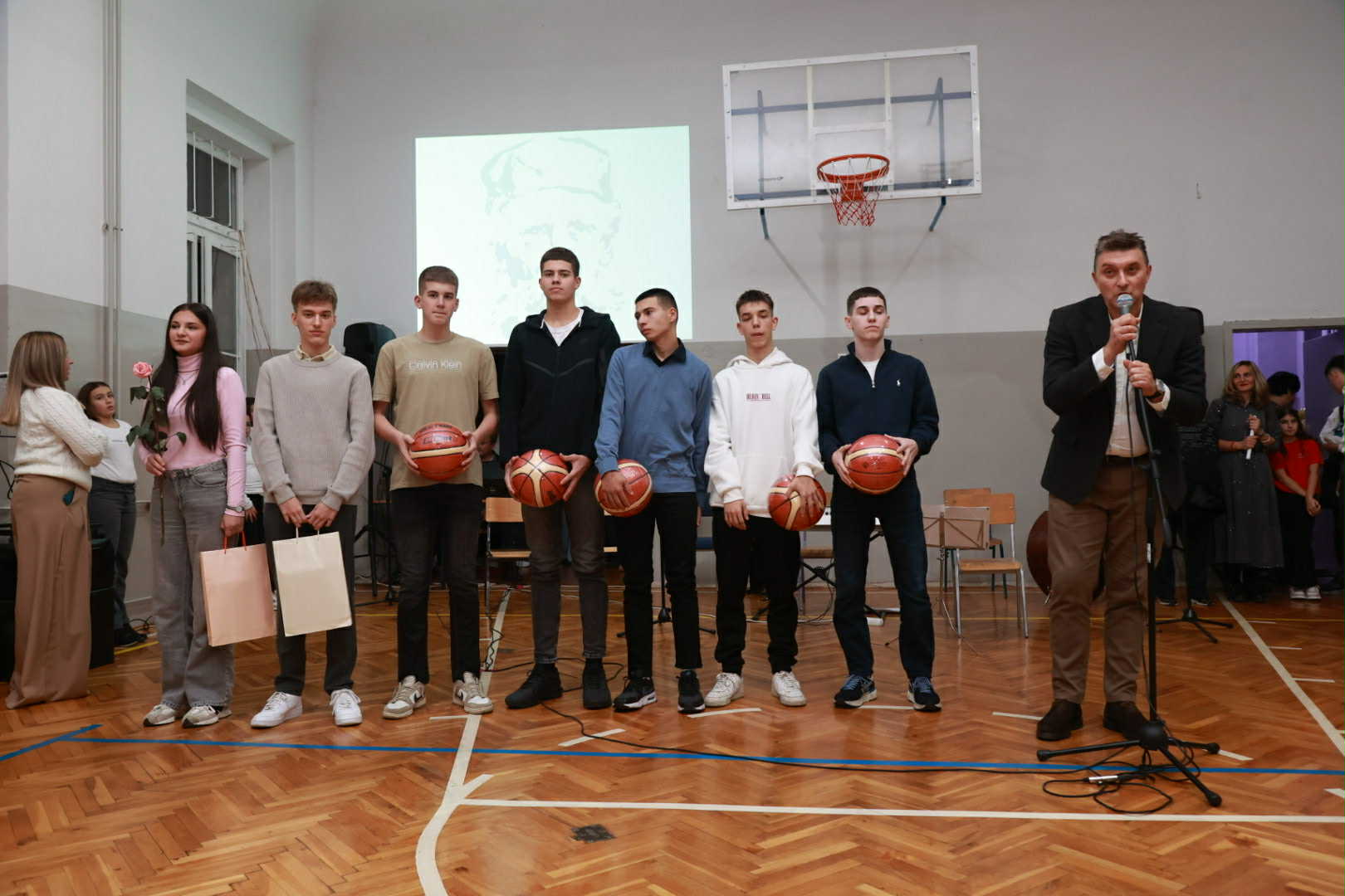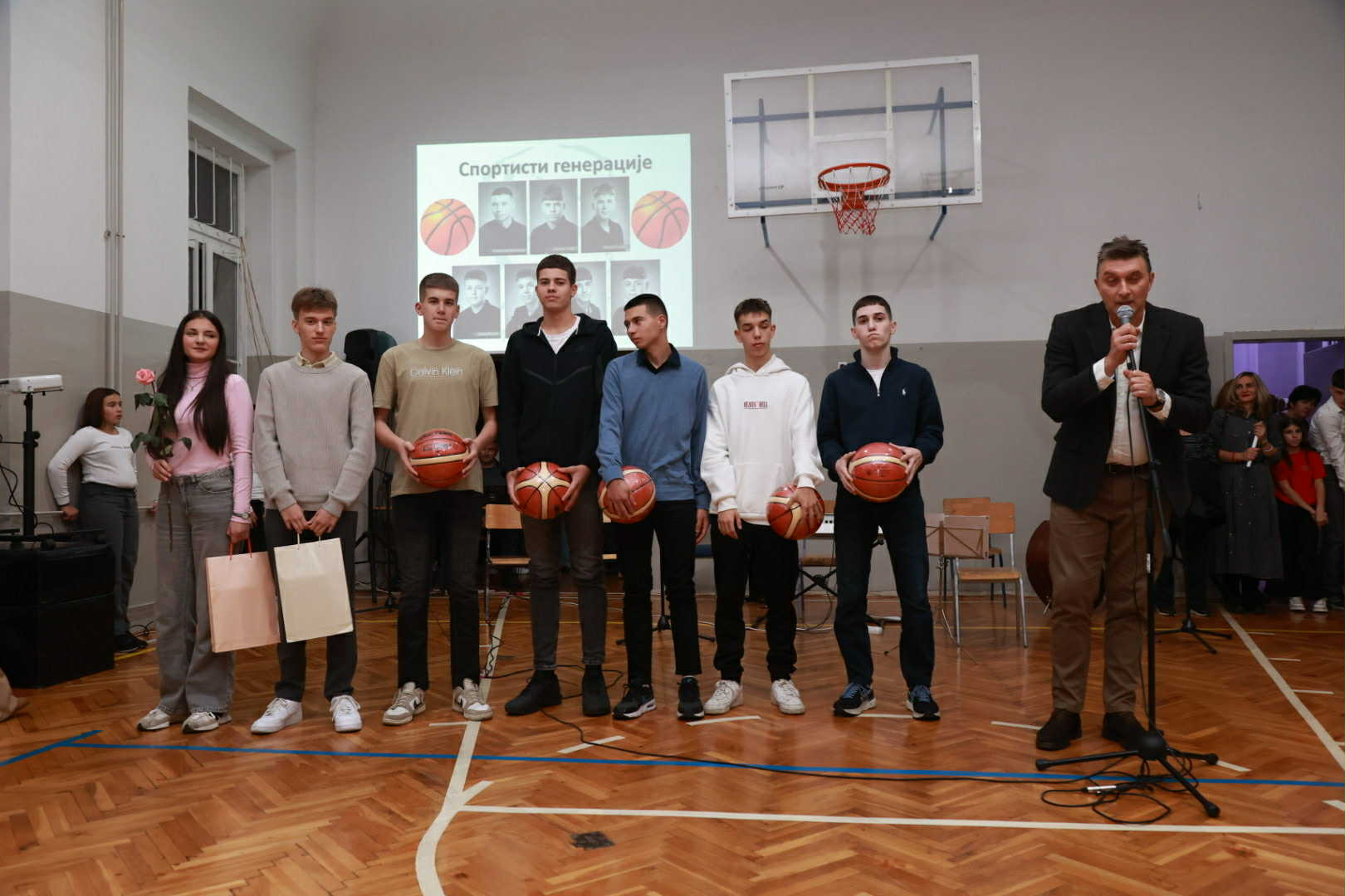 –Na današnjoj svečanosti, nagrade iz Fonda „Velinka Tešin“ dobili su Marija Cicović, sada učenica Karlovačke gimnazije, i Aleksandar Popov, učenik kikindske Gimnazije, koji su prošle školske godine završili našu školu. Nastavničko veće je, zbog uspeha na Republičkom takmičenju, za sportiste genaracije proglasilo mušku košarkašku ekipu, u kojoj su: Miroslav Batančev, Miloš Stanić, Nebojša Marjanović, Siniša Radak, David Varga, Sergej Karanović i Luka Mandžuković, dok je Mateja Kosić, koji je sada u Gimnaziji „Dušan Vasiljev“, poneo titulu đaka generacije – rekao je Ivan Pantelić, direktor OŠ „Vuk Karadžić“.
