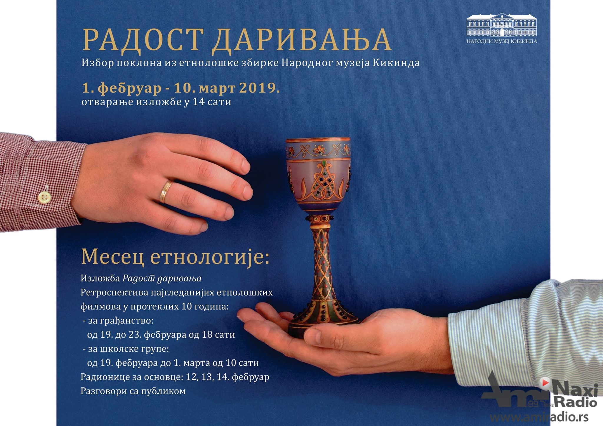 Izložba će biti otvorena do 10. marta, a u tom periodu biće realizovani fetsival etnološkog filma, dečje radionice na temu darivanja, kao i razgovori i druženja sa sugrađanima.