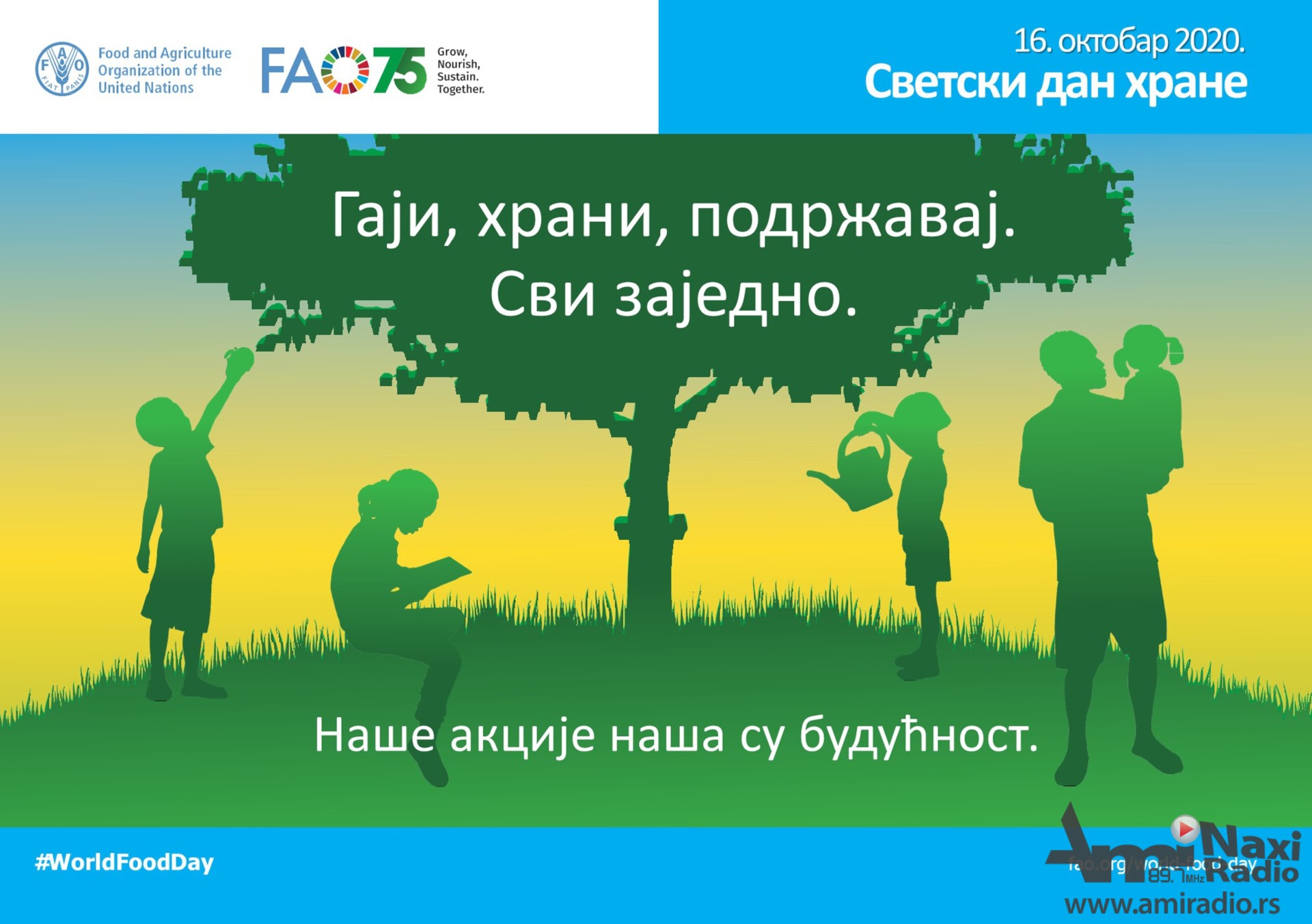 Ovogodišnji Svetski dan hrane obeležava se pod sloganom „Gaji, hrani, podržavaj. Svi zajedno. Naše akcije naša su budućnost“:
